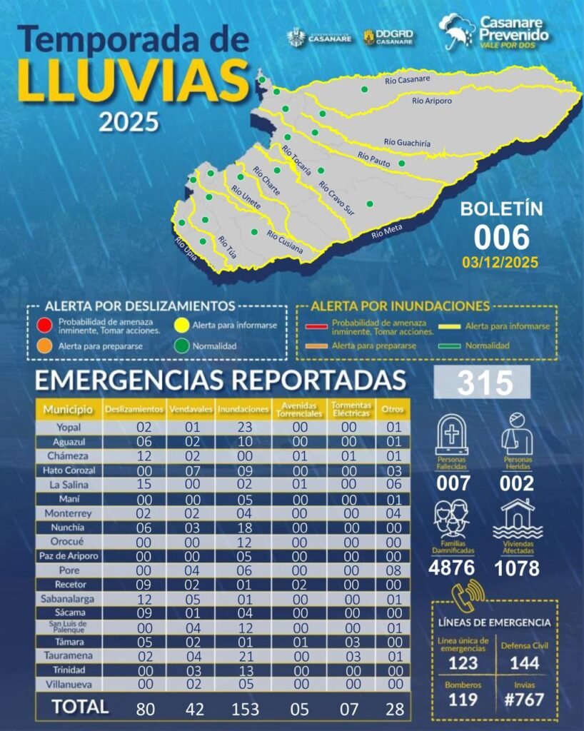 La Secretaría de Salud de Casanare presenta el balance del período de vigilancia intensificada de lesiones por pólvora pirotécnica e intoxicaciones por fósforo blanco y licor adulterado con metanol correspondiente a la temporada 2025 – 2026. Entre el 1 de diciembre de 2025 y el 17 de enero de 2026, con corte al 8 de diciembre de 2025 se han notificado dos casos confirmados por clínica asociados a lesiones por pólvora.